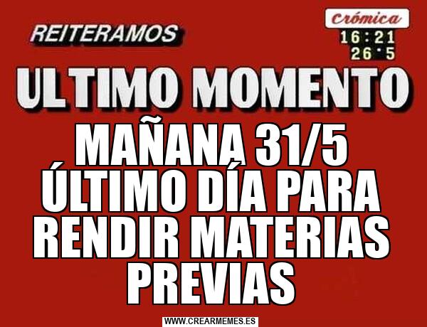 MAÑANA 31/5 ÚLTIMO DÍA PARA RENDIR MATERIAS PREVIAS