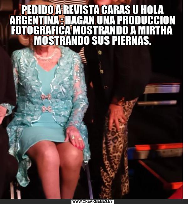 PEDIDO A REVISTA CARAS U HOLA ARGENTINA : HAGAN UNA PRODUCCION FOTOGRAFICA MOSTRANDO A MIRTHA MOSTRANDO SUS PIERNAS.