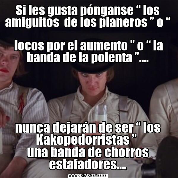 Si les gusta pónganse “ los amiguitos de los planeros ” o “ locos por el aumento ” o “ la banda de la polenta ”.... nunca dejarán de ser “ los Kakopedorristas ” una banda de chorros estafadores....