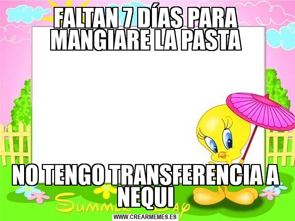 FALTAN 7 DÍAS PARA MANGIARE LA PASTA NO TENGO TRANSFERENCIA A NEQUI