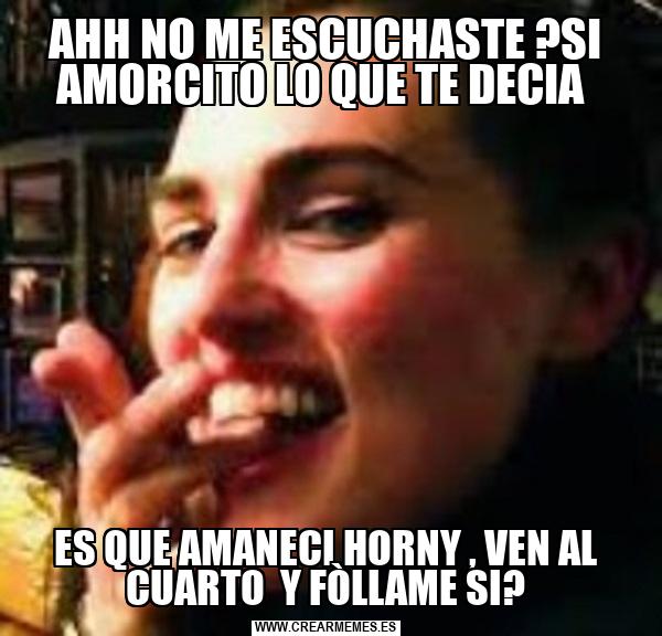 AHH NO ME ESCUCHASTE ?SI AMORCITO LO QUE TE DECIA ES QUE AMANECI HORNY , VEN AL CUARTO Y FÒLLAME SI?