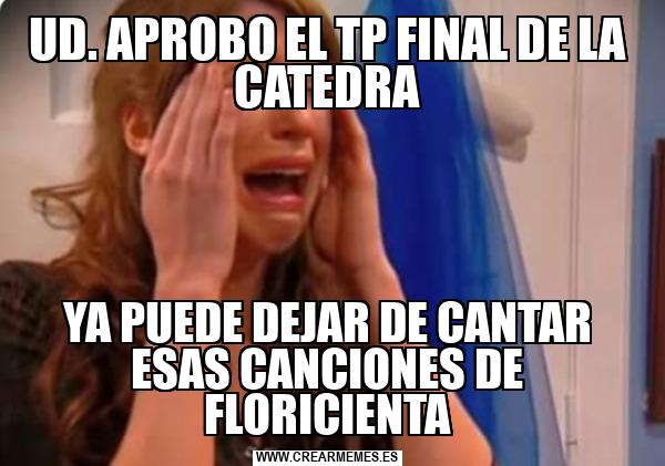UD. APROBO EL TP FINAL DE LA CATEDRA YA PUEDE DEJAR DE CANTAR ESAS CANCIONES DE FLORICIENTA