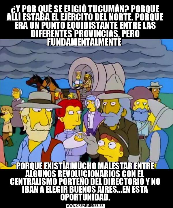 ¿Y POR QUÉ SE ELIGIÓ TUCUMÁN? PORQUE ALLÍ ESTABA EL EJÉRCITO DEL NORTE. PORQUE ERA UN PUNTO EQUIDISTANTE ENTRE LAS DIFERENTES PROVINCIAS, PERO FUNDAMENTALMENTE PORQUE EXISTÍA MUCHO MALESTAR ENTRE ALGUNOS REVOLUCIONARIOS CON EL CENTRALISMO PORTEÑO DEL DIRECTORIO Y NO IBAN A ELEGIR BUENOS AIRES...EN ESTA OPORTUNIDAD.
