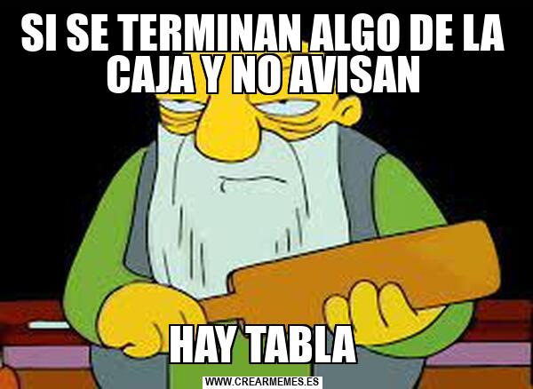SI SE TERMINAN ALGO DE LA CAJA Y NO AVISAN HAY TABLA