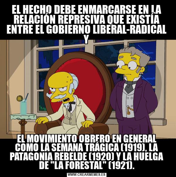 EL HECHO DEBE ENMARCARSE EN LA RELACIÓN REPRESIVA QUE EXISTÍA ENTRE EL GOBIERNO LIBERAL-RADICAL Y EL MOVIMIENTO OBRERO EN GENERAL COMO LA SEMANA TRÁGICA (1919), LA PATAGONIA REBELDE (1920) Y LA HUELGA DE "LA FORESTAL" (1921).