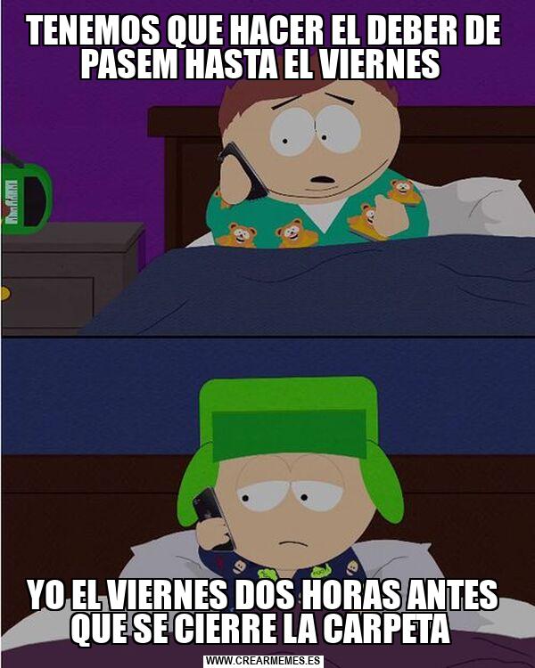 TENEMOS QUE HACER EL DEBER DE PASEM HASTA EL VIERNES YO EL VIERNES DOS HORAS ANTES QUE SE CIERRE LA CARPETA