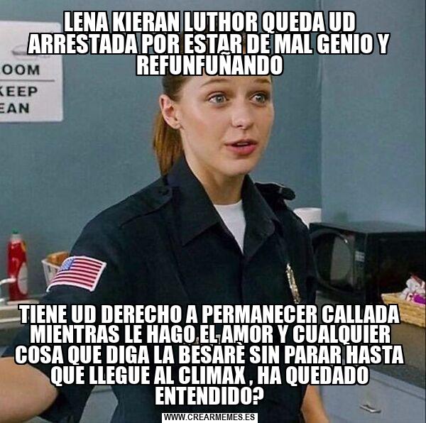 LENA KIERAN LUTHOR QUEDA UD ARRESTADA POR ESTAR DE MAL GENIO Y REFUNFUÑANDO TIENE UD DERECHO A PERMANECER CALLADA MIENTRAS LE HAGO EL AMOR Y CUALQUIER COSA QUE DIGA LA BESARÈ SIN PARAR HASTA QUE LLEGUE AL CLIMAX , HA QUEDADO ENTENDIDO?