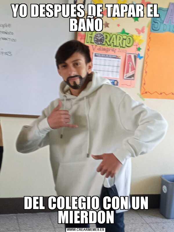 YO DESPUES DE TAPAR EL BAÑO DEL COLEGIO CON UN MIERDON
