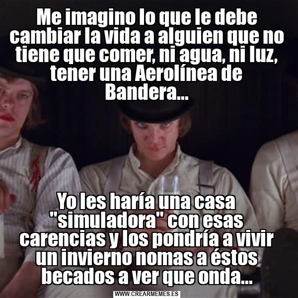 Me imagino lo que le debe cambiar la vida a alguien que no tiene que comer, ni agua, ni luz, tener una Aerolínea de Bandera... Yo les haría una casa "simuladora" con esas carencias y los pondría a vivir un invierno nomas a éstos becados a ver que onda...