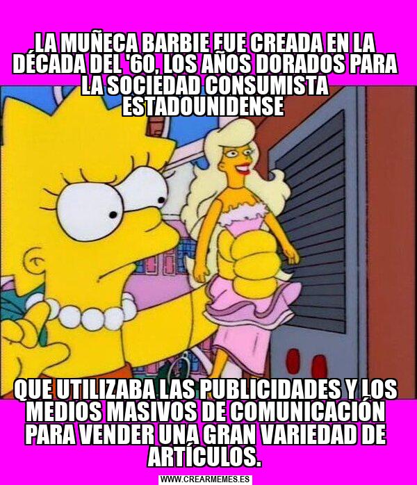 LA MUÑECA BARBIE FUE CREADA EN LA DÉCADA DEL '60, LOS AÑOS DORADOS PARA LA SOCIEDAD CONSUMISTA ESTADOUNIDENSE QUE UTILIZABA LAS PUBLICIDADES Y LOS MEDIOS MASIVOS DE COMUNICACIÓN PARA VENDER UNA GRAN VARIEDAD DE ARTÍCULOS.