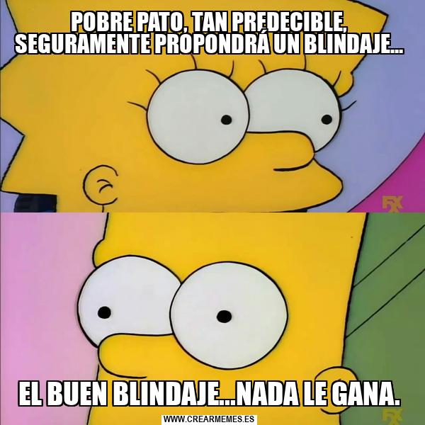 POBRE PATO, TAN PREDECIBLE, SEGURAMENTE PROPONDRÁ UN BLINDAJE... EL BUEN BLINDAJE...NADA LE GANA.