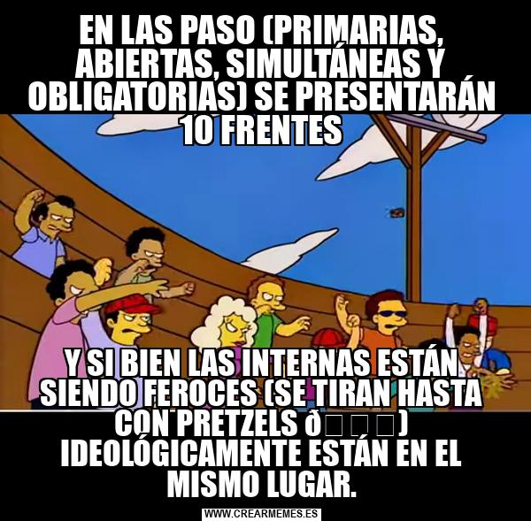 EN LAS PASO (PRIMARIAS, ABIERTAS, SIMULTÁNEAS Y OBLIGATORIAS) SE PRESENTARÁN 10 FRENTES Y SI BIEN LAS INTERNAS ESTÁN SIENDO FEROCES (SE TIRAN HASTA CON PRETZELS