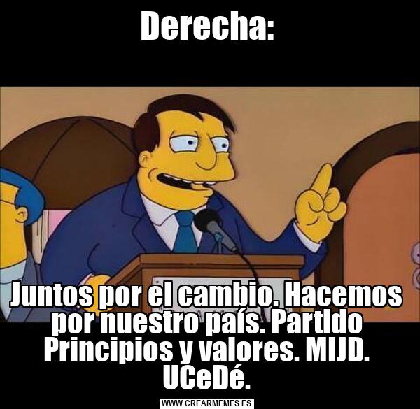 Derecha: Juntos por el cambio. Hacemos por nuestro país. Partido Principios y valores. MIJD. UCeDé.