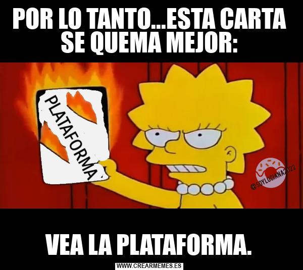 POR LO TANTO...ESTA CARTA SE QUEMA MEJOR: VEA LA PLATAFORMA.