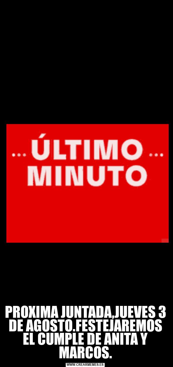 PROXIMA JUNTADA,JUEVES 3 DE AGOSTO.FESTEJAREMOS EL CUMPLE DE ANITA Y MARCOS.