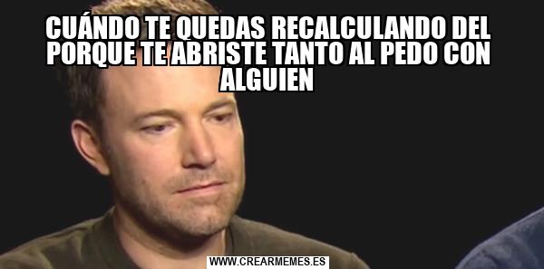 CUÁNDO TE QUEDAS RECALCULANDO DEL PORQUE TE ABRISTE TANTO AL PEDO CON ALGUIEN