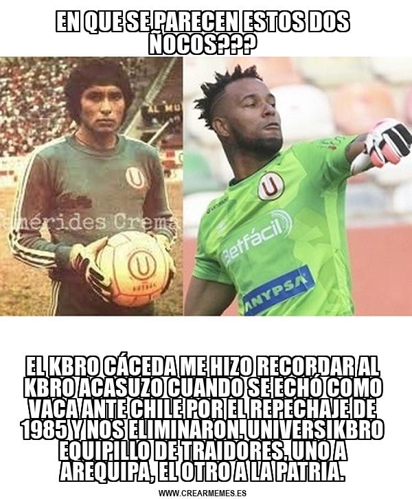 EN QUE SE PARECEN ESTOS DOS ÑOCOS??? EL KBRO CÁCEDA ME HIZO RECORDAR AL KBRO ACASUZO CUANDO SE ECHÓ COMO VACA ANTE CHILE POR EL REPECHAJE DE 1985 Y NOS ELIMINARON. UNIVERSIKBRO EQUIPILLO DE TRAIDORES, UNO A AREQUIPA, EL OTRO A LA PATRIA.
