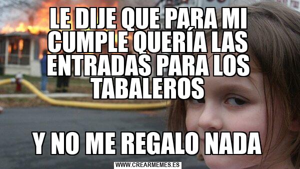 LE DIJE QUE PARA MI CUMPLE QUERÍA LAS ENTRADAS PARA LOS TABALEROS Y NO ME REGALO NADA