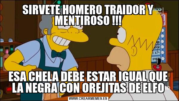 SIRVETE HOMERO TRAIDOR Y MENTIROSO !!! ESA CHELA DEBE ESTAR IGUAL QUE LA NEGRA CON OREJITAS DE ELFO