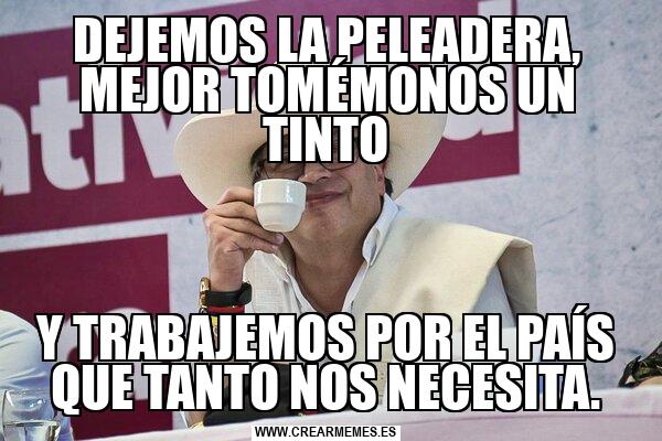 DEJEMOS LA PELEADERA, MEJOR TOMÉMONOS UN TINTO Y TRABAJEMOS POR EL PAÍS QUE TANTO NOS NECESITA.