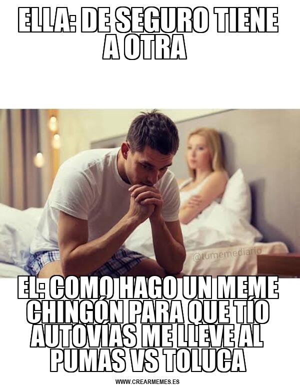 ELLA: DE SEGURO TIENE A OTRA EL: COMO HAGO UN MEME CHINGÓN PARA QUE TÍO AUTOVÍAS ME LLEVE AL PUMAS VS TOLUCA