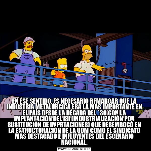 EN ESE SENTIDO, ES NECESARIO REMARCAR QUE LA INDUSTRIA METALÚRGICA ERA LA MÁS IMPORTANTE EN EL PAÍS DESDE LA DÉCADA DEL ´30 CON LA IMPLANTACIÓN DEL ISI (INDUSTRIALIZACIÓN POR SUSTITUCIÓN DE IMPRTACIONES) QUE DESEMBOCÓ EN LA ESTRUCTURACIÓN DE LA UOM C