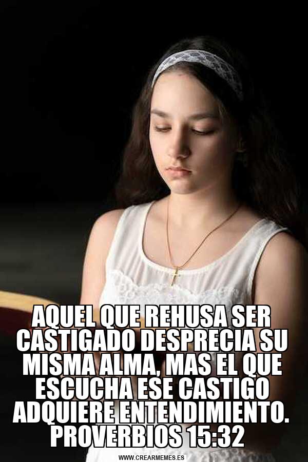 AQUEL QUE REHUSA SER CASTIGADO DESPRECIA SU MISMA ALMA, MAS EL QUE ESCUCHA ESE CASTIGO ADQUIERE ENTENDIMIENTO. PROVERBIOS 15:32
