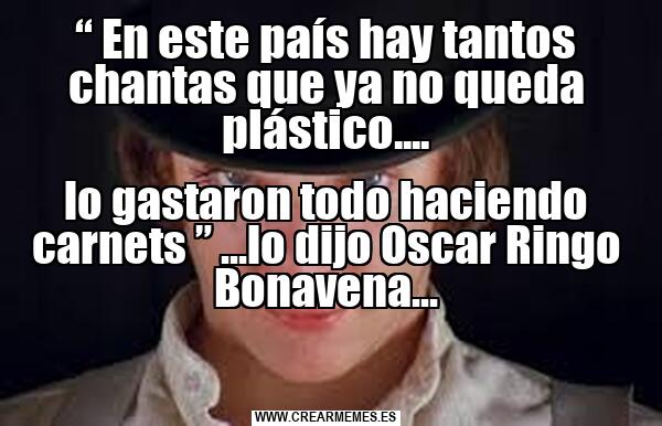 “ En este país hay tantos chantas que ya no queda plástico.... lo gastaron todo haciendo carnets ” ...lo dijo Oscar Ringo Bonavena...