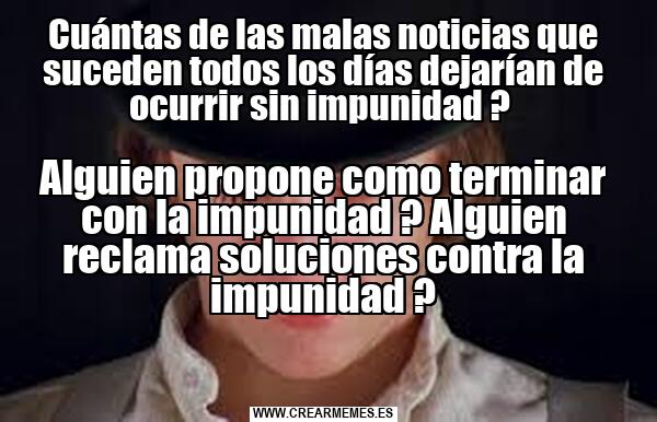 Cuántas de las malas noticias que suceden todos los días dejarían de ocurrir sin impunidad ? Alguien propone como terminar con la impunidad ? Alguien reclama soluciones contra la impunidad ?
