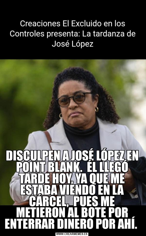 DISCULPEN A JOSÉ LÓPEZ EN POINT BLANK. ÉL LLEGÓ TARDE HOY, YA QUE ME ESTABA VIENDO EN LA CÁRCEL, PUES ME METIERON AL BOTE POR ENTERRAR DINERO POR AHÍ.