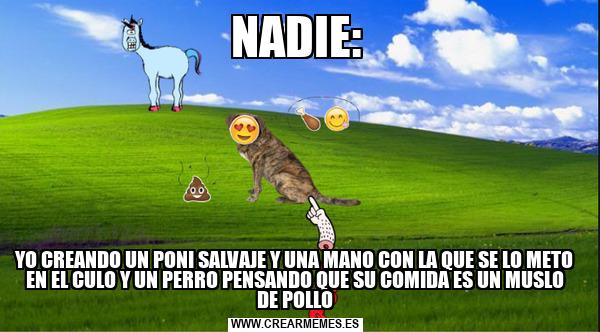 NADIE: YO CREANDO UN PONI SALVAJE Y UNA MANO CON LA QUE SE LO METO EN EL CULO Y UN PERRO PENSANDO QUE SU COMIDA ES UN MUSLO DE POLLO