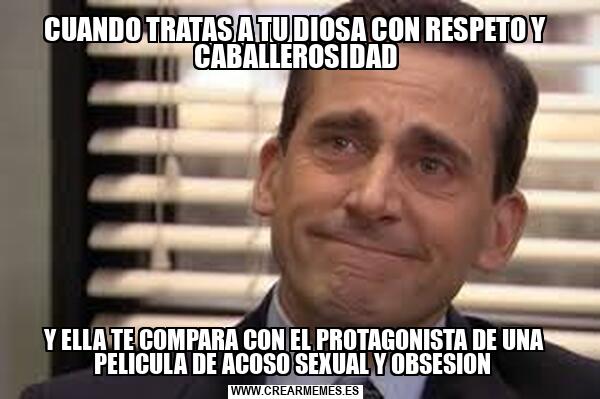 CUANDO TRATAS A TU DIOSA CON RESPETO Y CABALLEROSIDAD Y ELLA TE COMPARA CON EL PROTAGONISTA DE UNA PELICULA DE ACOSO SEXUAL Y OBSESION